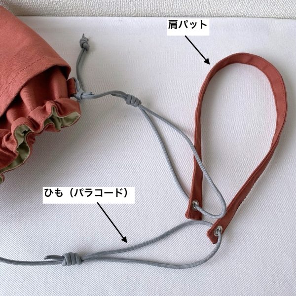 巾着のひもにも、パラコードを使用しました。