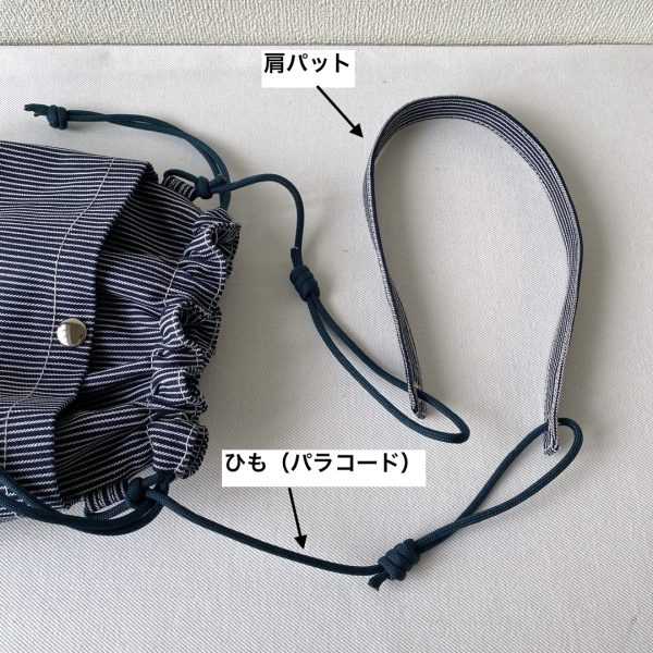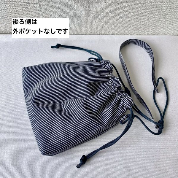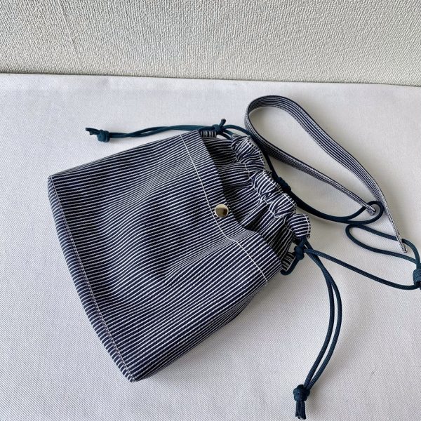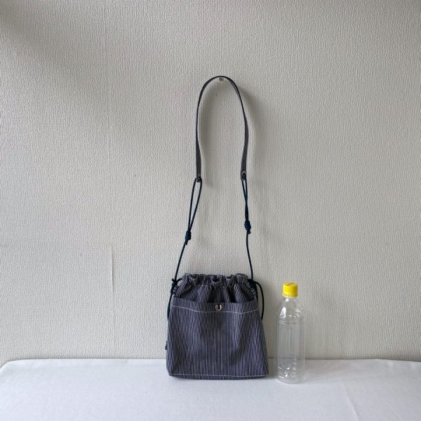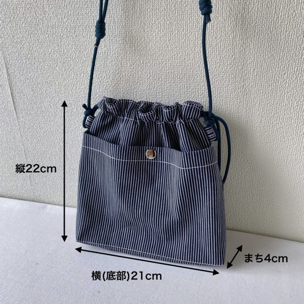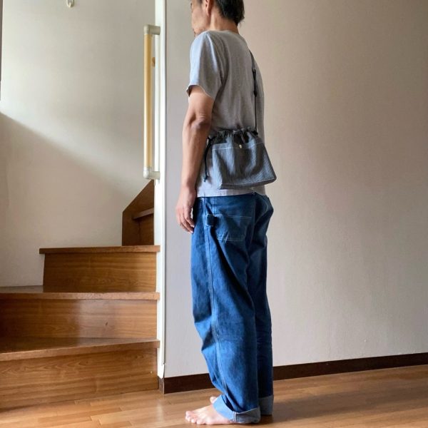 ヒッコリーデニム生地で巾着ショルダーバッグ作りました